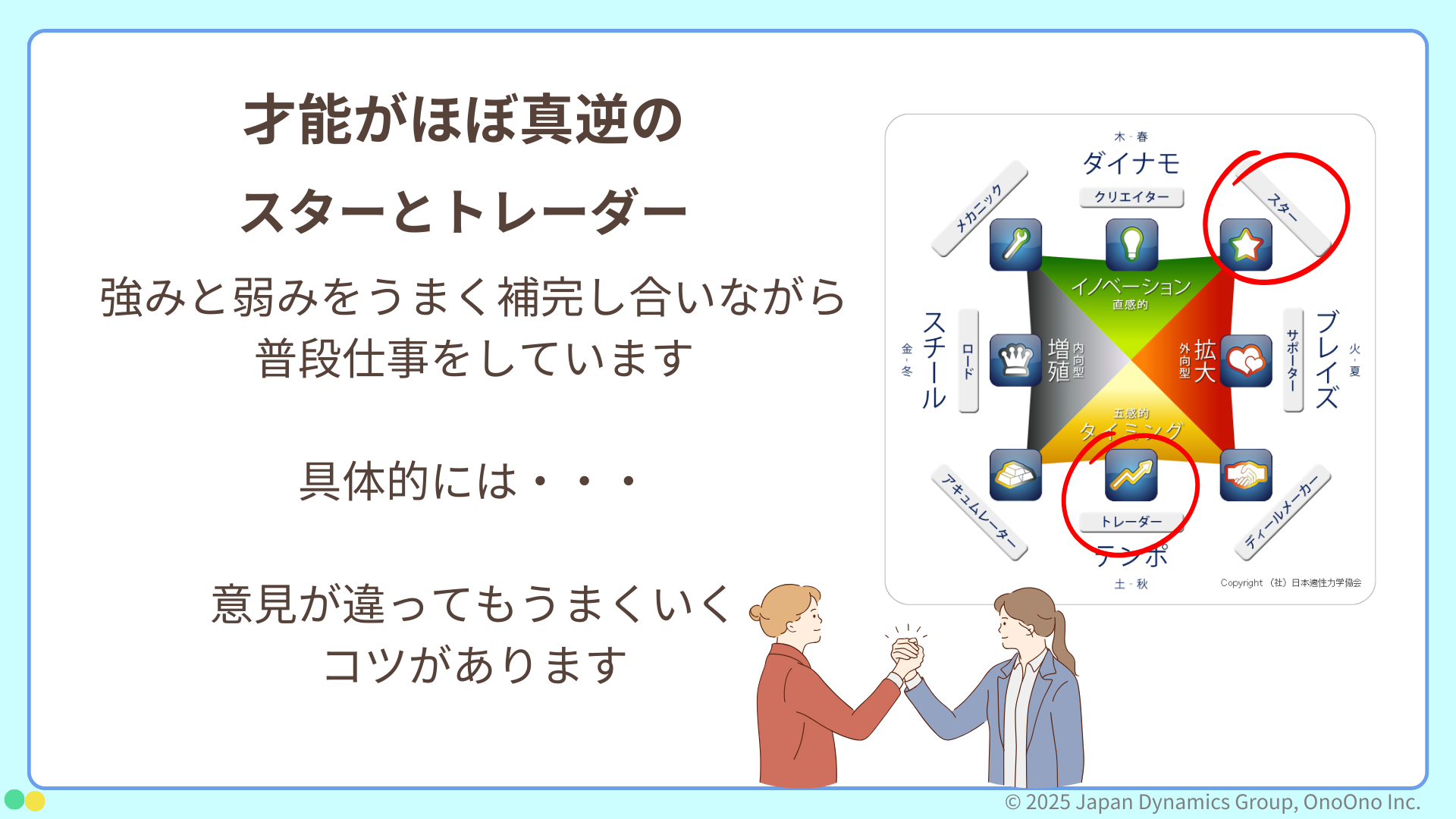 実際に、佐藤と私はこの個性の違いを掛け合わせながら、役割を分担し仕事をしていることを実践しています。